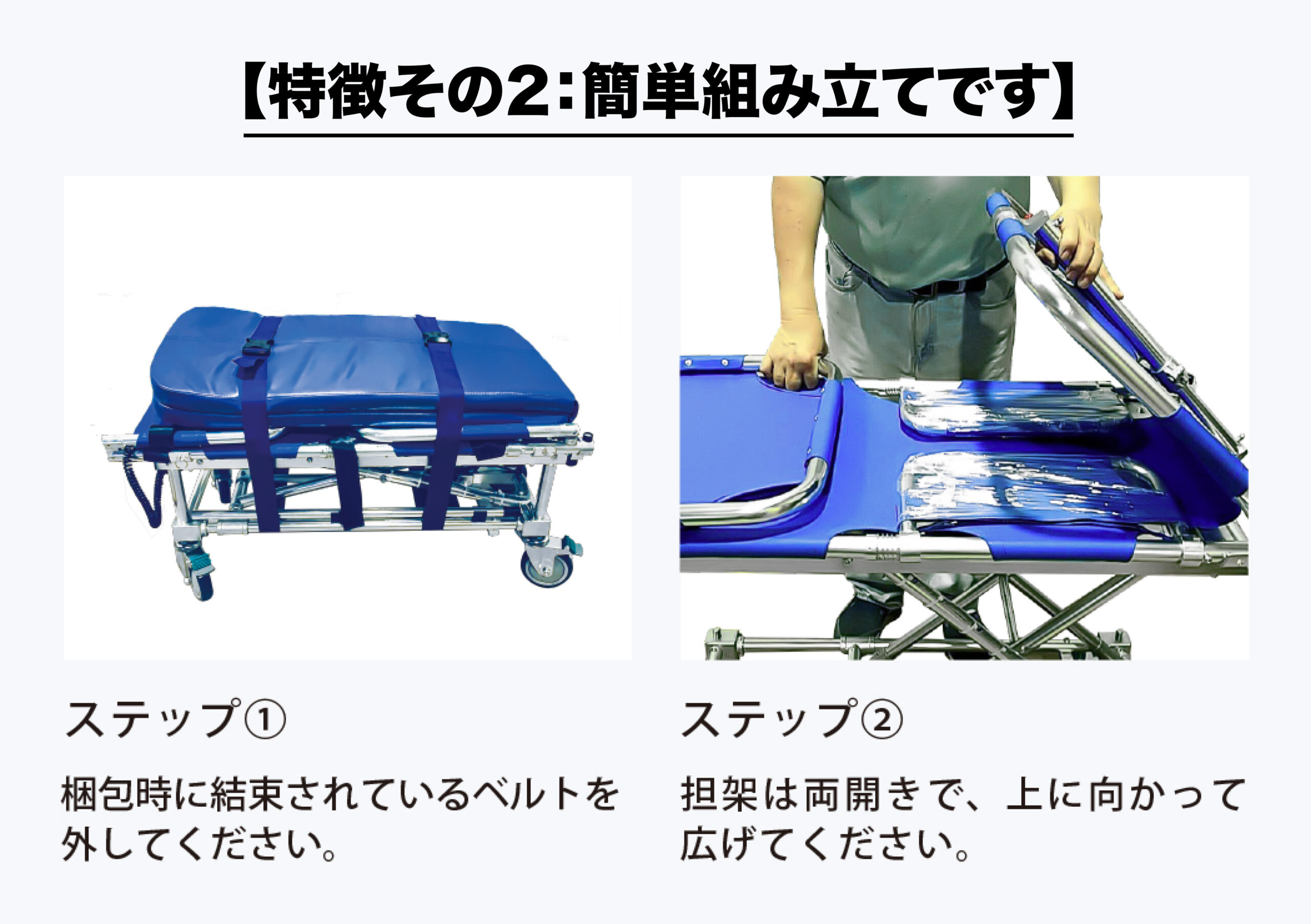 商品:両開き式電動ストレッチャー Eストコン